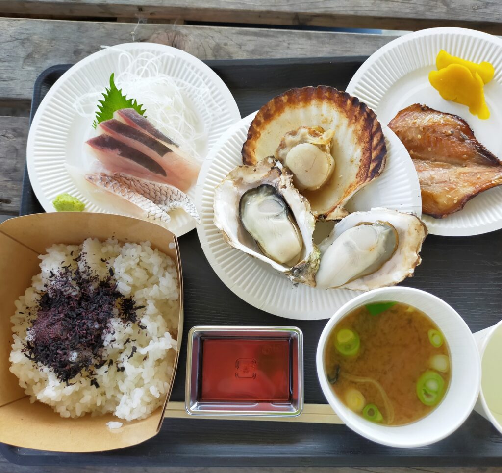今回たくさんのお店があって迷いに迷って、お昼ご飯で頂いたのは海女小屋なか川さんの「まかない定食」と鈴木水産さんの鯛茶漬けを頂きました✨外にテーブルもあるのでワンコも大丈夫ですよ😄