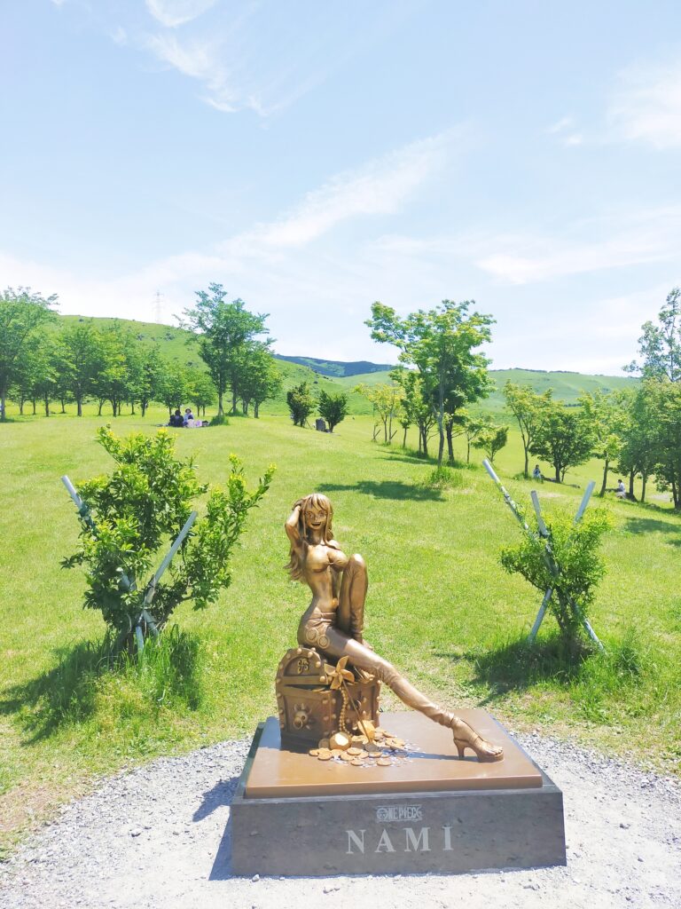萌の里には、熊本地震の復興プロジェクトで麦わらの一味でもあるナミの銅像が設置されていましたよ✨